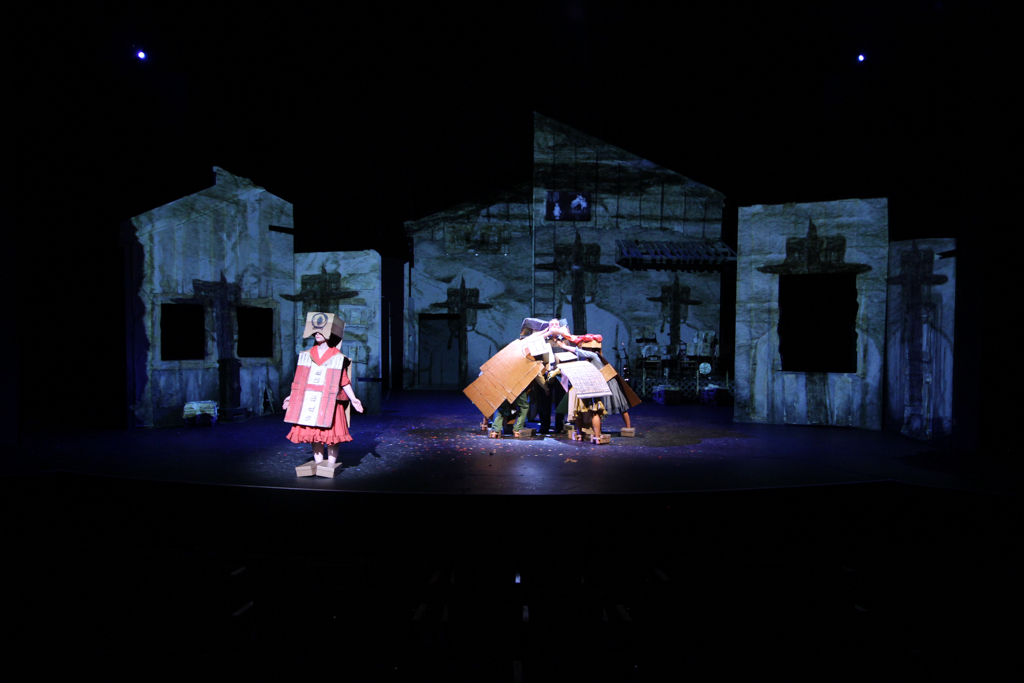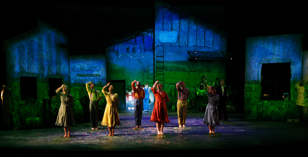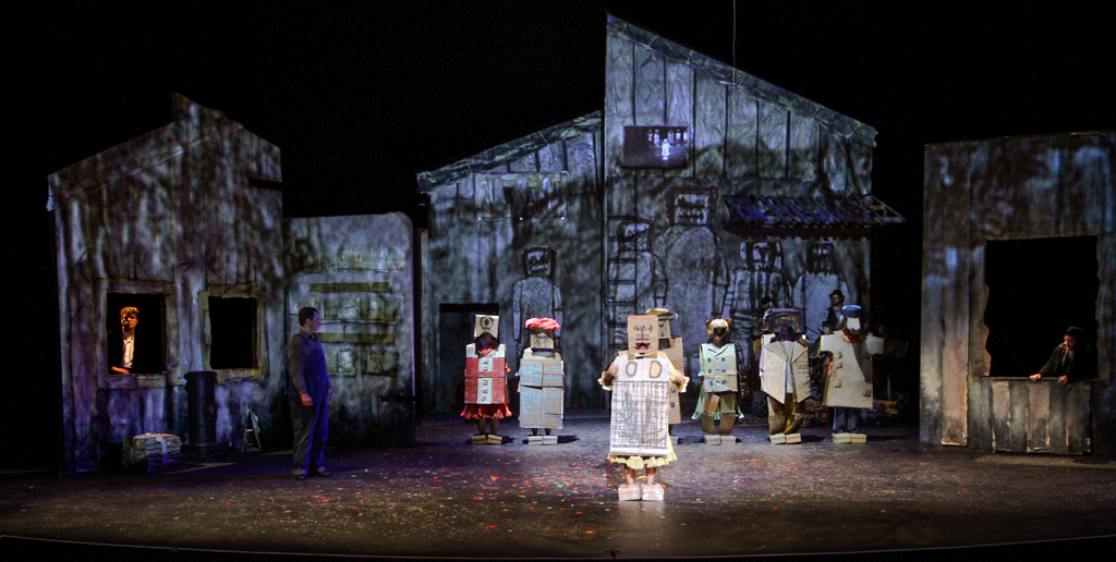 Summary: Charles Mee’s play is a deeply personal and poetic exploration of the life and art of profoundly deaf outsider artist James Castle. Produced originally at Arizona State University and then remounted at the New Ohio Theatre in New York, Kim Weild’s direction called for an immersive and reactive media environment. Using live cameras and procedural animation techniques we turned the physical structures of the entire set into a virtual canvas for the performers to draw upon with movement as well as brush strokes from the actor playing James Castle. The captured and processed movements brushed on and off samples of Castle artwork throughout the production.